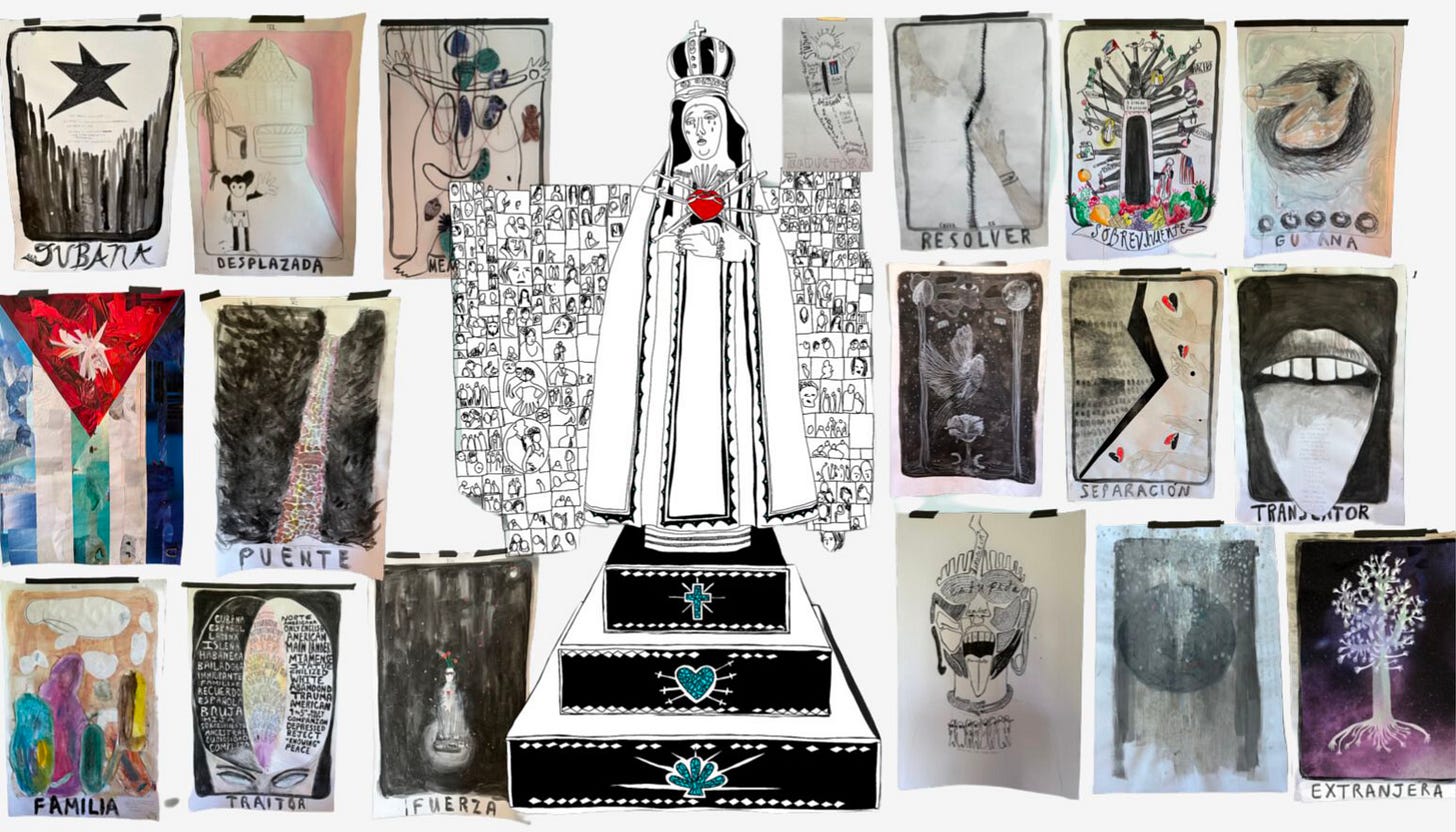 The external display, or expression of resolviendo, is art; a place where wounding is made visible, a space to express gratitude or to ask for divine support. Creating puts one in touch with the pain—whether physical, emotional, or spiritual. Giving the wound a tangible form and an altar on which to rest offers one space to witness the wound from a different perspective and can begin to provide momentary relief from being the only one "charged" with pain.13
